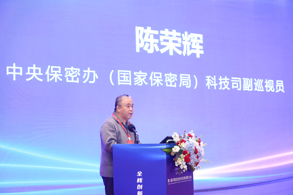 中央保密办(国家保密局)科技司副巡视员陈荣辉出席大会并致辞。陈荣辉局长讲到,随着我国数字经济的快速发展,信创产业已经被提升到国家安全的战略高度,也是维护国家安全、数字经济持续健康发展的重要保障。在推进我国信创产业快速发展的同时,也要充分认识做好保密工作的极端重要性,加强忧患意识,坚持底线思维,做到居安思危、未雨绸缪,时刻绷紧保密这根弦,坚定不移贯彻总体国家安全观,增强工作的前瞻性、主动性,加快推进保密工作体系和能力建设,强化技术支撑,维护我国数字经济发展安全,维护我国国家发展安全。