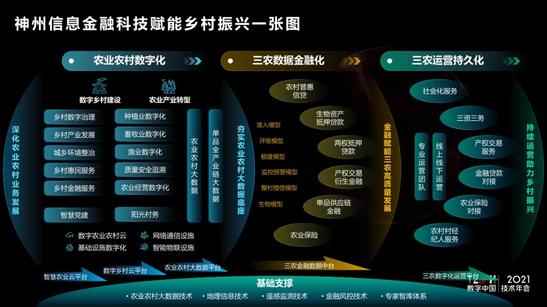 9月29日,TECH数字中国 2021技术年会——“场景创新·赋能高质量发展”主题论坛在西城区新动力BB贝博艾弗森官网金融科技创新中心举办。BB贝博艾弗森官网农业BG副总裁刘烨做题为《金融科技赋能乡村振兴一张图》主题演讲,并发布“BB贝博艾弗森官网金融科技赋能乡村振兴一张图”,通过“农业农村业务数字化+农业农村资产金融化+农业农村运营持久化”,提供完善的整体解决方案,从夯实农业农村大数据底座、金融赋能三农高质量发展到未来持续运营服务,助力国家乡村振兴战略全面有效落地,为农业农村现代化发展的总体思路、发展目标、重点任务提供指引。